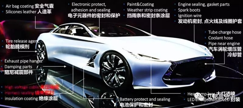 我們都知道橡塑原材料在車上的運(yùn)用十分廣泛,因?yàn)榫邆鋬?yōu)異的耐溫性、抗寒性、電介電強(qiáng)度等特性,能夠 具有避震、密封性、傳動(dòng)系統(tǒng)、傳送和支撐點(diǎn)的功效,是汽車產(chǎn)業(yè)中必不可少的部分。汽車工業(yè)上的硅橡膠制品關(guān)鍵做為粘合與密封膠、灌封膠、疑膠、絕緣層建筑涂料、導(dǎo)熱膠等原材料,這種原材料被用以維護(hù)柴油發(fā)動(dòng)機(jī)模塊、點(diǎn)火線零線圏與打火控制模塊、動(dòng)力裝置控制模塊、剎車系統(tǒng)控制模塊、化工廢氣排放模塊、電氣系統(tǒng)、燈光控制系統(tǒng)、各種各樣控制器、射頻連接器這些。