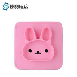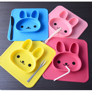 ?1、可愛(ài)的卡通兔子餐盤(pán),食品級(jí)硅膠材質(zhì),背后吸盤(pán),可以牢牢吸在桌子上。