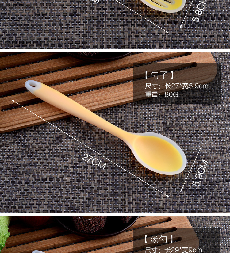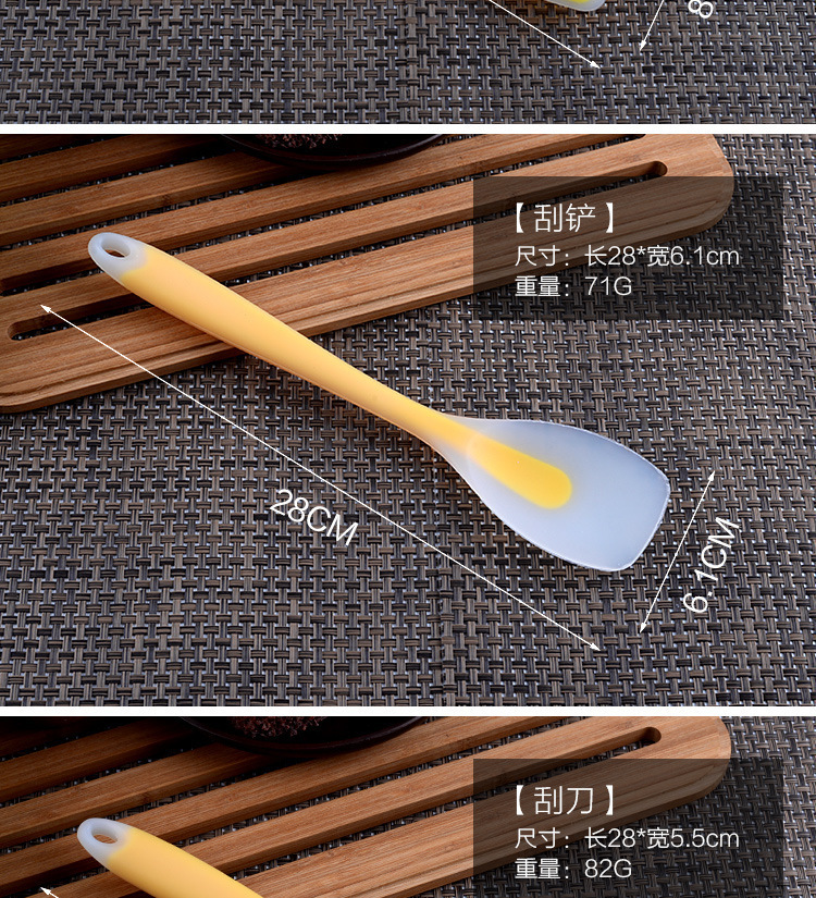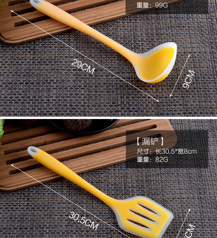 這套硅膠廚具完美的適用于家庭廚房,安全環(huán)保耐用,很好的保護(hù)了