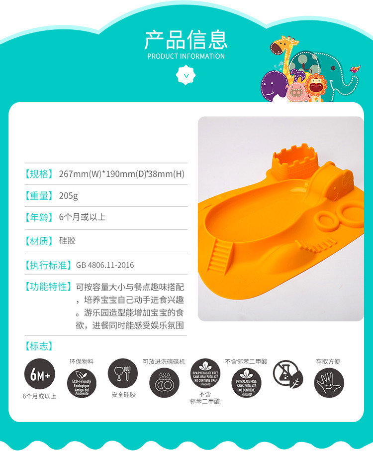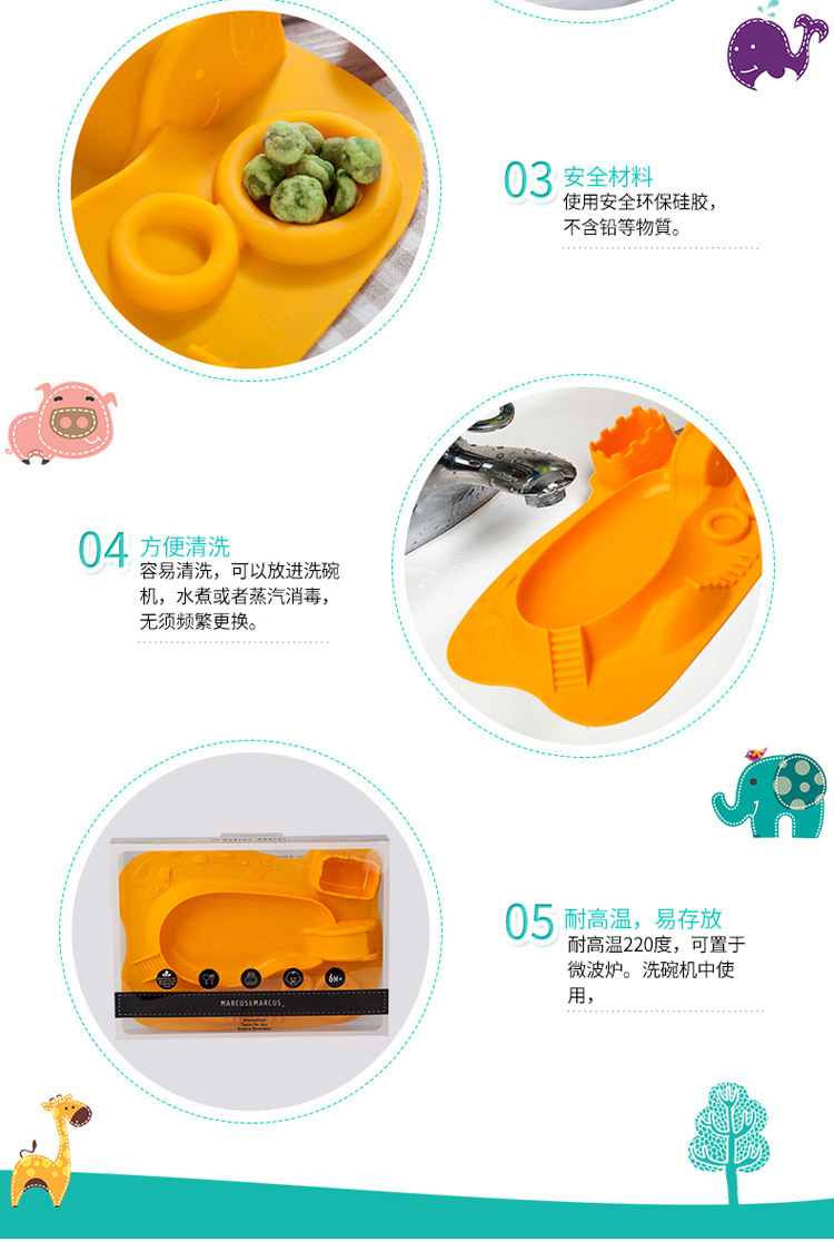 5、餐盤(pán)+餐墊一體式設(shè)計(jì),餐墊防滑設(shè)計(jì),防止兒童小手打翻