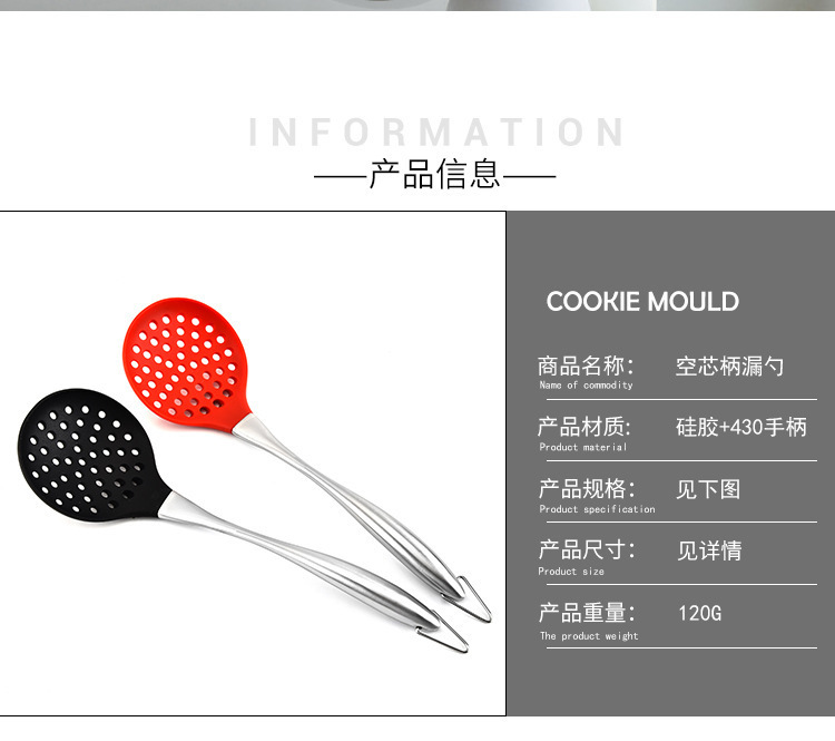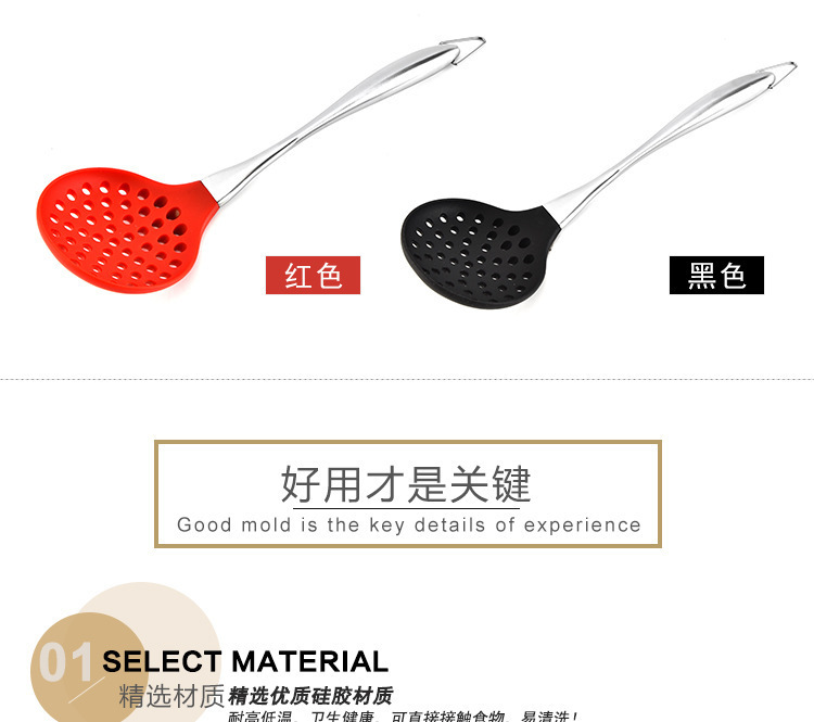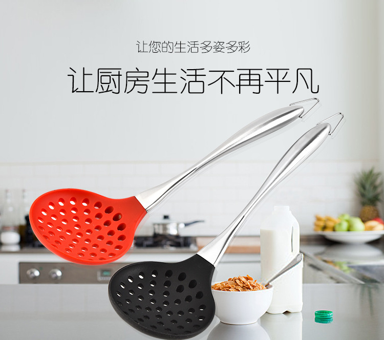 - 硅膠漏勺,不銹鋼柄硅膠漏勺,硅膠撈面勺