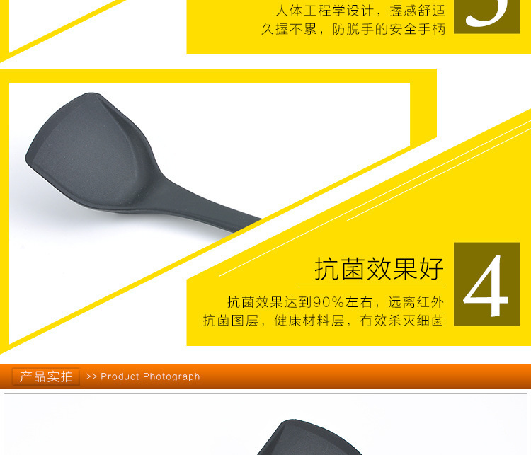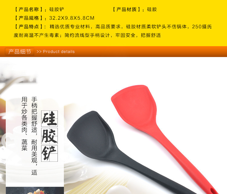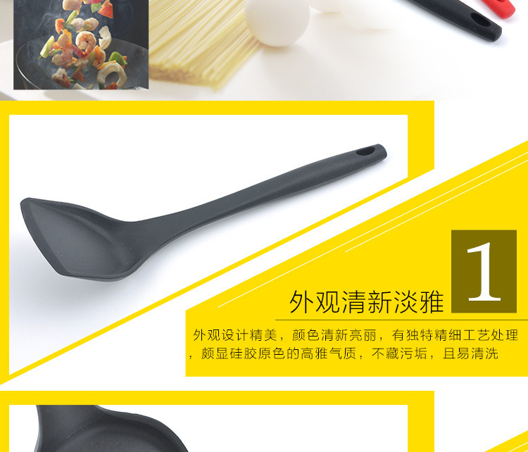 1、精選優(yōu)質(zhì)專業(yè)材料,高品質(zhì)要求,硅膠材質(zhì)柔軟鏟頭不傷鍋體,250℃耐高溫不產(chǎn)生毒素,簡約流線型手柄設(shè)計,牢固安全,把握舒適