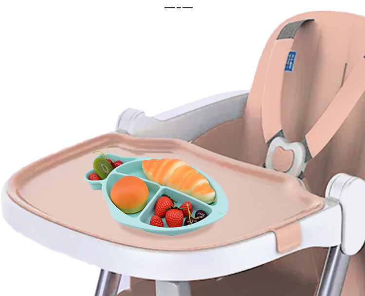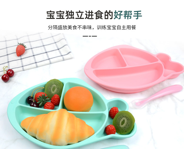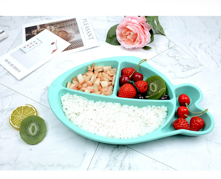 小魚(yú)硅膠餐盤(pán)-一體式分格吸盤(pán)防摔兒童食品級(jí)硅膠餐盤(pán)