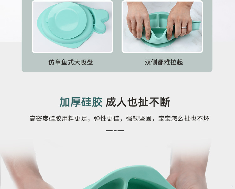 - 小魚(yú)硅膠餐盤(pán)-一體式分格吸盤(pán)防摔兒童食品級(jí)硅膠餐盤(pán)