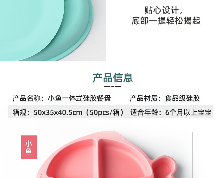 產(chǎn)品名稱(chēng):小魚(yú)硅膠餐盤(pán) 吸盤(pán)防打翻可愛(ài)卡通一體式分隔兒童食品級(jí)吃飯餐盤(pán)