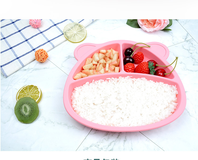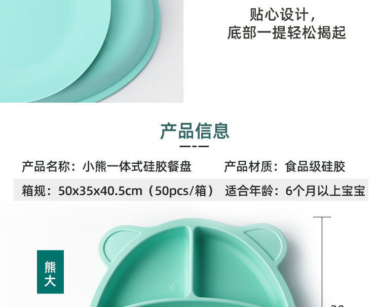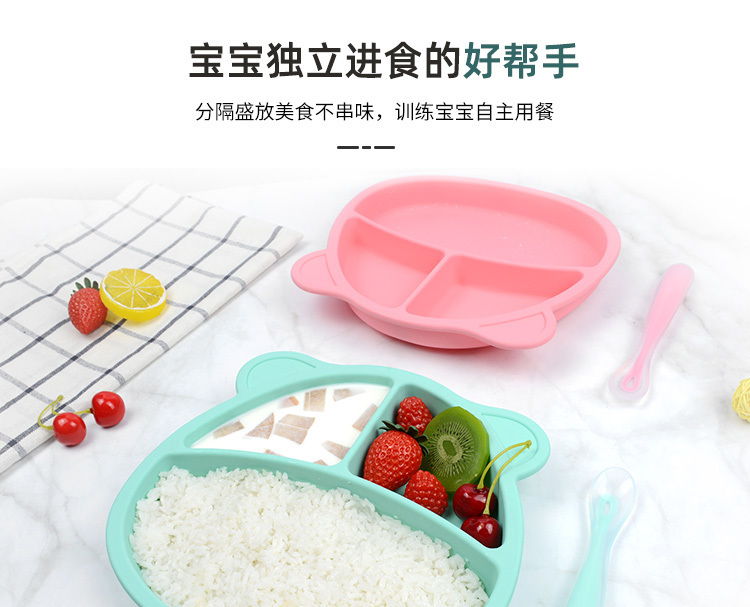 產(chǎn)品名稱:卡通笑臉熊硅膠餐盤 食品級(jí)可愛小熊兒童餐具 吸盤防摔安全無異味